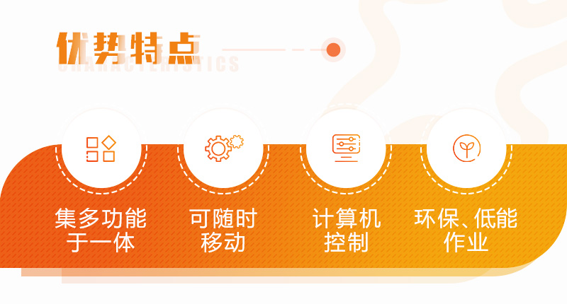 2、可隨時移動:該設(shè)備可隨時移動,僅需一個按鈕即可啟動,作業(yè)靈活,對于環(huán)境的適應(yīng)能力強,對道路輸裝條件要求低。