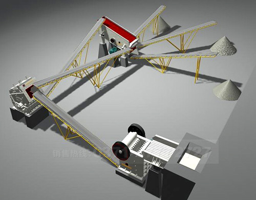 河卵石制沙工藝流程:料倉——振動給料機——粗破(顎式破碎機)——輸送設(shè)備(輸送機)——制沙機——輸送設(shè)備——篩分設(shè)備——成品或制沙機——洗砂機——成品。